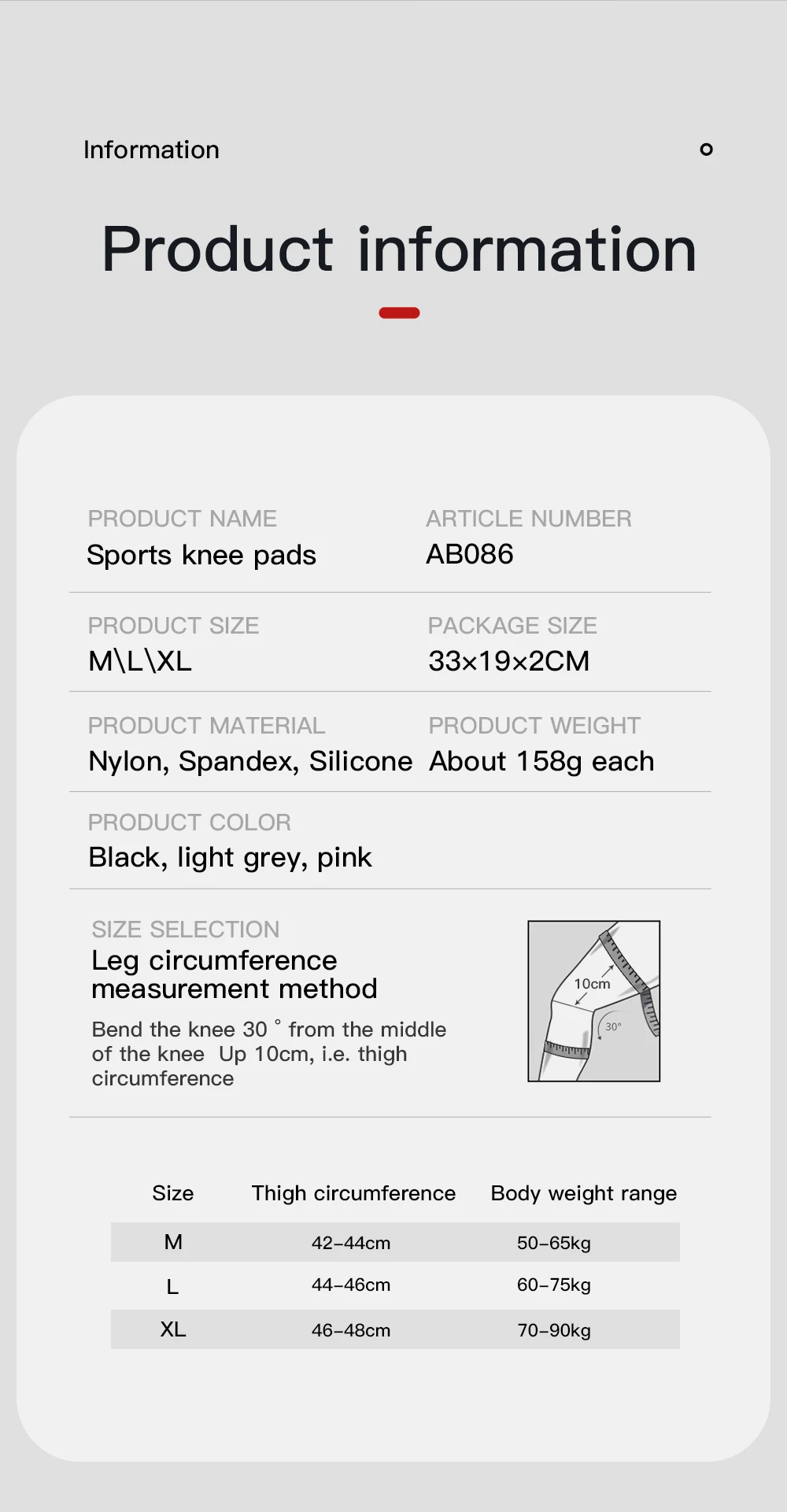 L---Suit for knee circumference 44-46cm,body weight 60-75kg